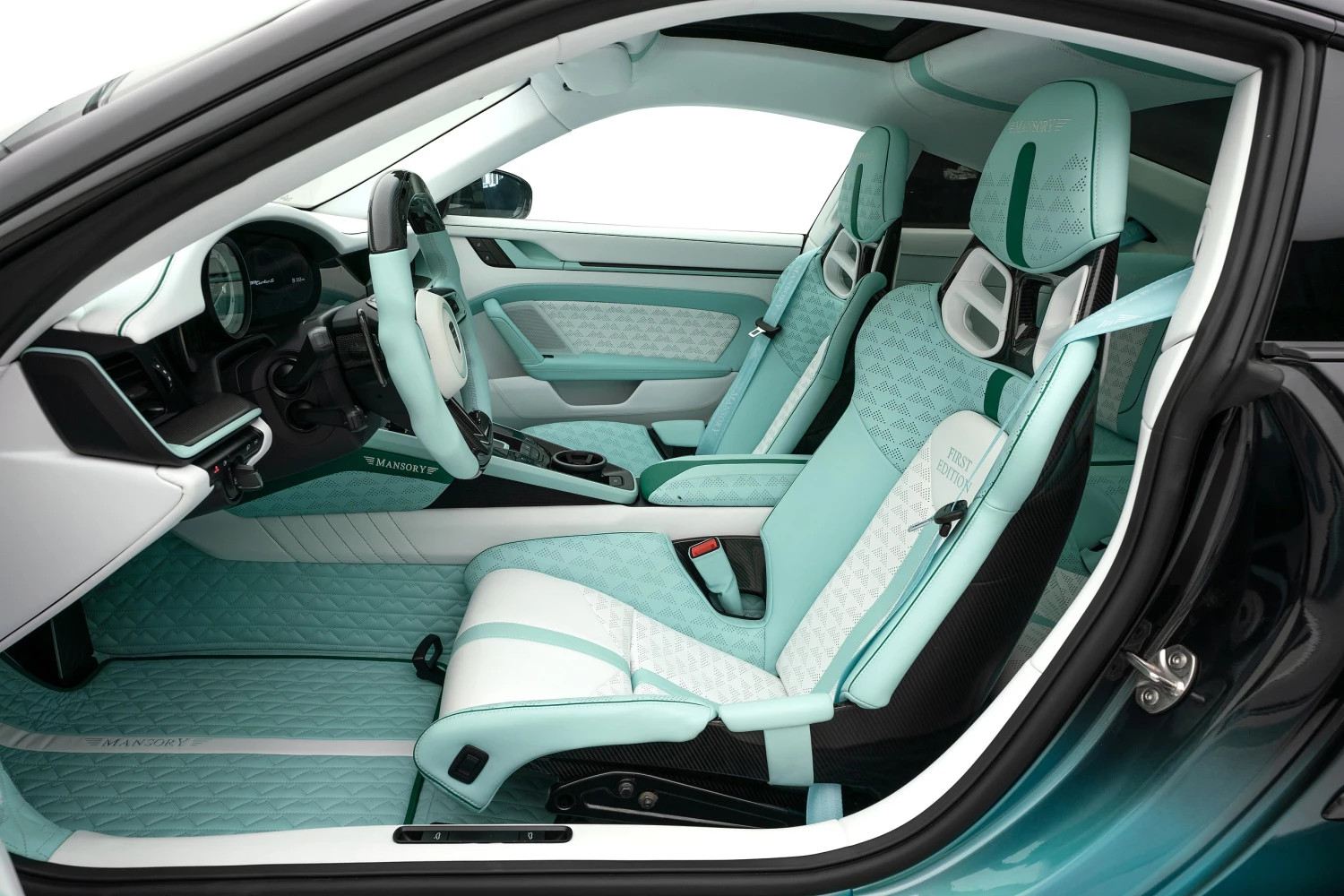 Kit aerodinâmico Mansory – Exclusivos detalhes em fibra de carbono no capô, para-choques dianteiro e traseiro, difusor e saias laterais, garantindo maior performance e um visual ainda mais agressivo.